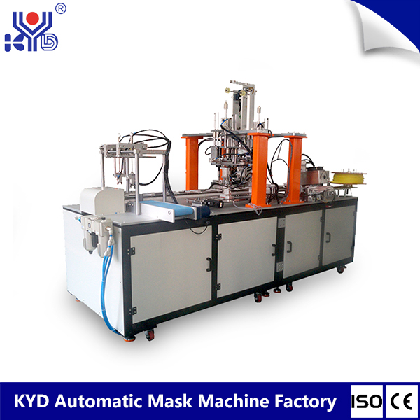 KYD-MD008 máscara de doblar la correa de la oreja de la máquina de soldadura de lazo es una máquina automática que fija el alambre de la nariz externa y el lazo del oído de la correa para la cabeza a la máscara plegada mediante soldadura ultrasónica. Solo se requiere 1 operador para colocar la máscara en blanco en la posición designada, y esta máquina de soldadura de bucle automático realizará automáticamente la alimentación, el corte y la soldadura del alambre de la nariz; alimentación y soldadura de lazo de oído; acabado de apilamiento de productos. Esto mejorará en gran medida la eficiencia y la calidad, y ahorrará costos de mano de obra.